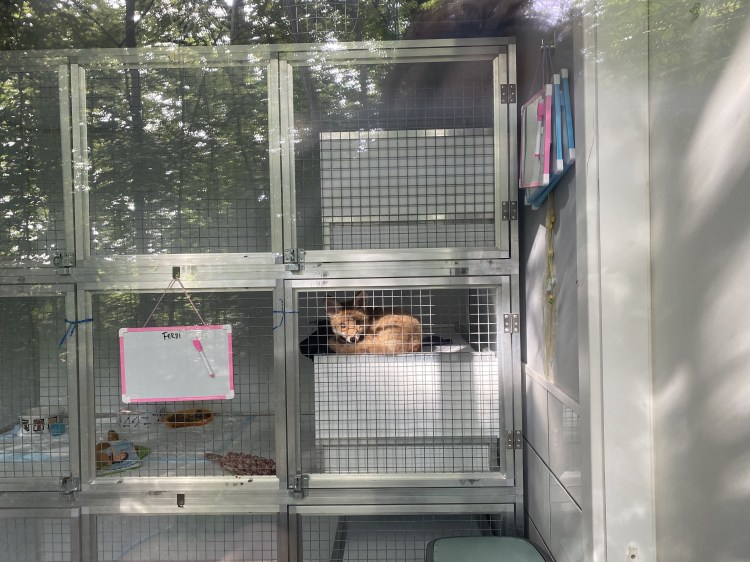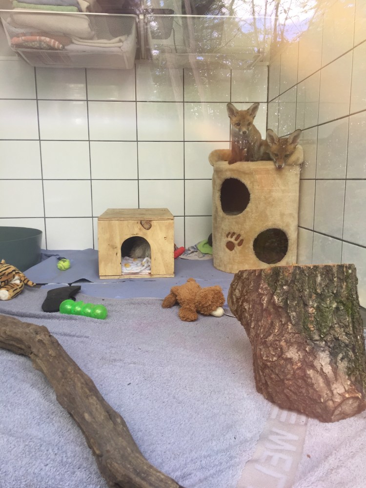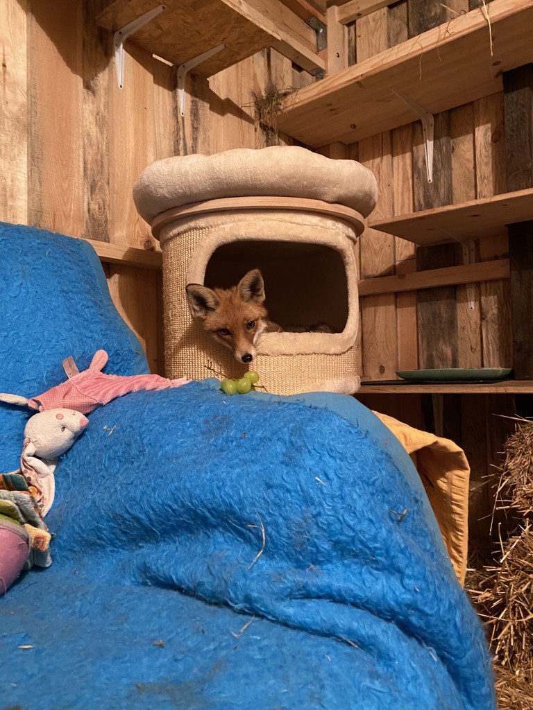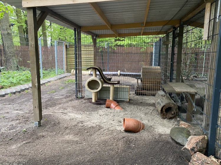 Unser Fuchsbau besteht aus einem 100 m² großen Gehege, das in kleinere Gehege unterteilt werden kann, sowie einem separaten Container, der als Kranken- und Quarantänestation für die problematischsten Jungtiere dient. Die Gehege sind mit unterirdischen Gängen, Aussichtspunkten und viel Spielzeug ausgestattet. Zur Überwachung und Sicherheit ist alles mit einem Kamerasystem ausgestattet.